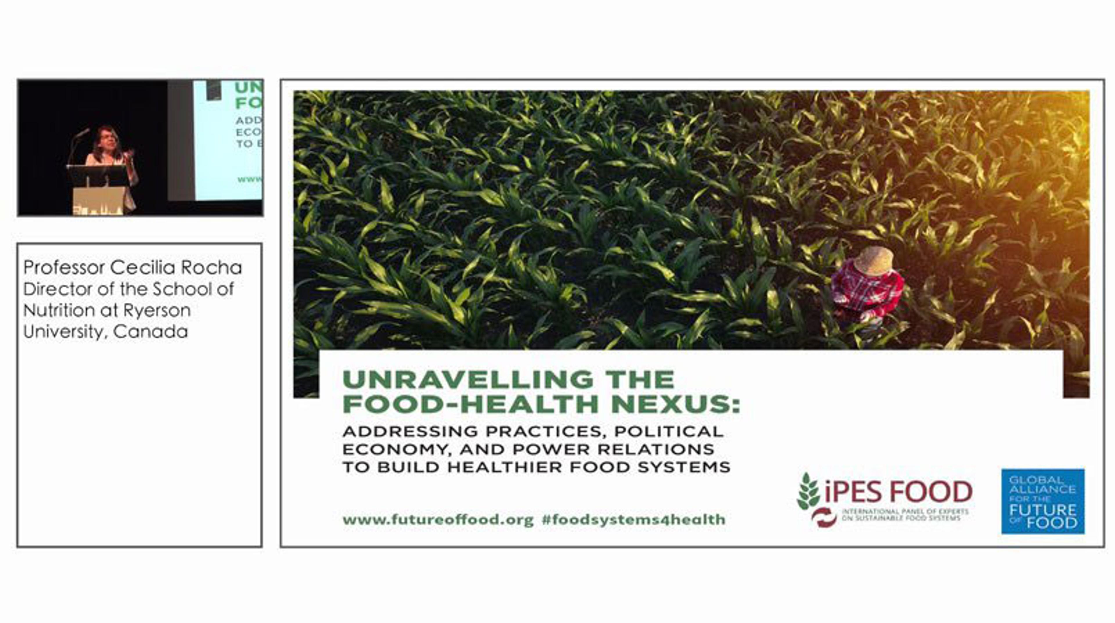 Professor Cecilia Rocha, Director of the School of Nutrition at Ryerson University, Canada, presents the results of an iPES FOOD report on sustainable food systems, commissioned by the Global Alliance for the Future of Food. The report set out to understand how food systems impact human health, how well these impacts are understood, the challenges faced in building a comprehensive understanding of these impacts and the key leverage points that can be used to change food systems in the future.