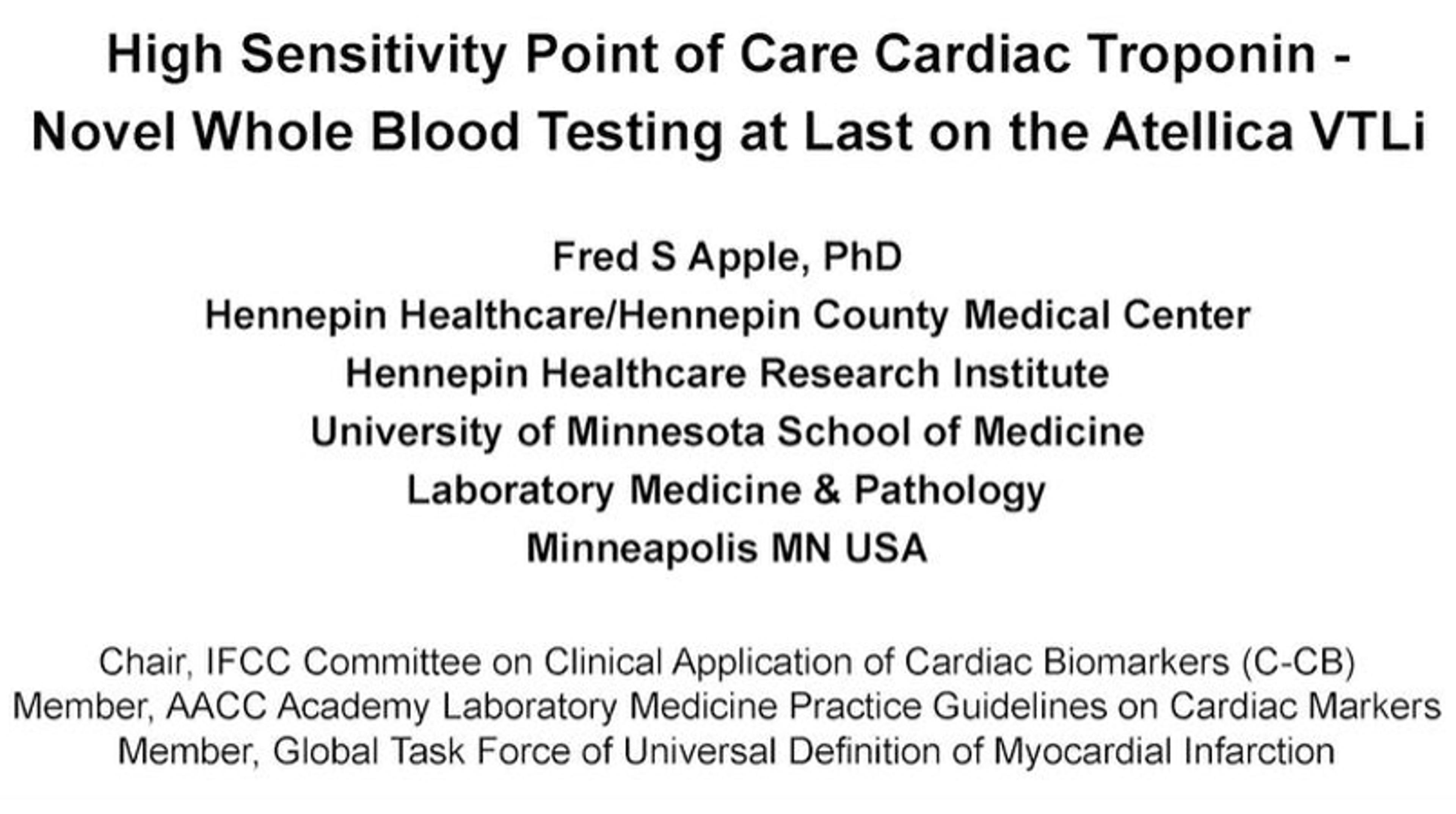 In this expert webinar, Dr. Fred Apple discusses the relevance and use of high-sensitivity troponin in the emergency department setting. Dr. Apple reviews the scientific literature pertaining to high-sensitivity point of care (POC) troponin and speaks to the critical considerations for set-up and implementation of POC clinical studies, including the combined efforts of the laboratory and emergency department clinical staff.
